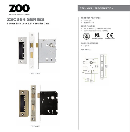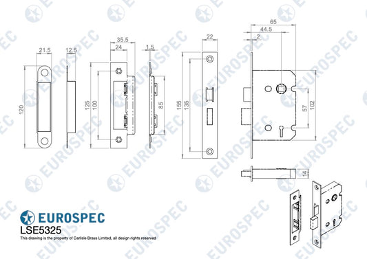 Carlisle Brass Easi T Residential 3 Lever Sashlock 2.5" Brass