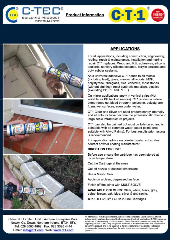 CT1 is the only product in the market with TRIBRID® Technology, making it 360% stronger than a traditional Hybrid Polymer. With TRIBRID® Technology, it is scientifically proven to have excellent colour retention – white stays white and clear stays clear.