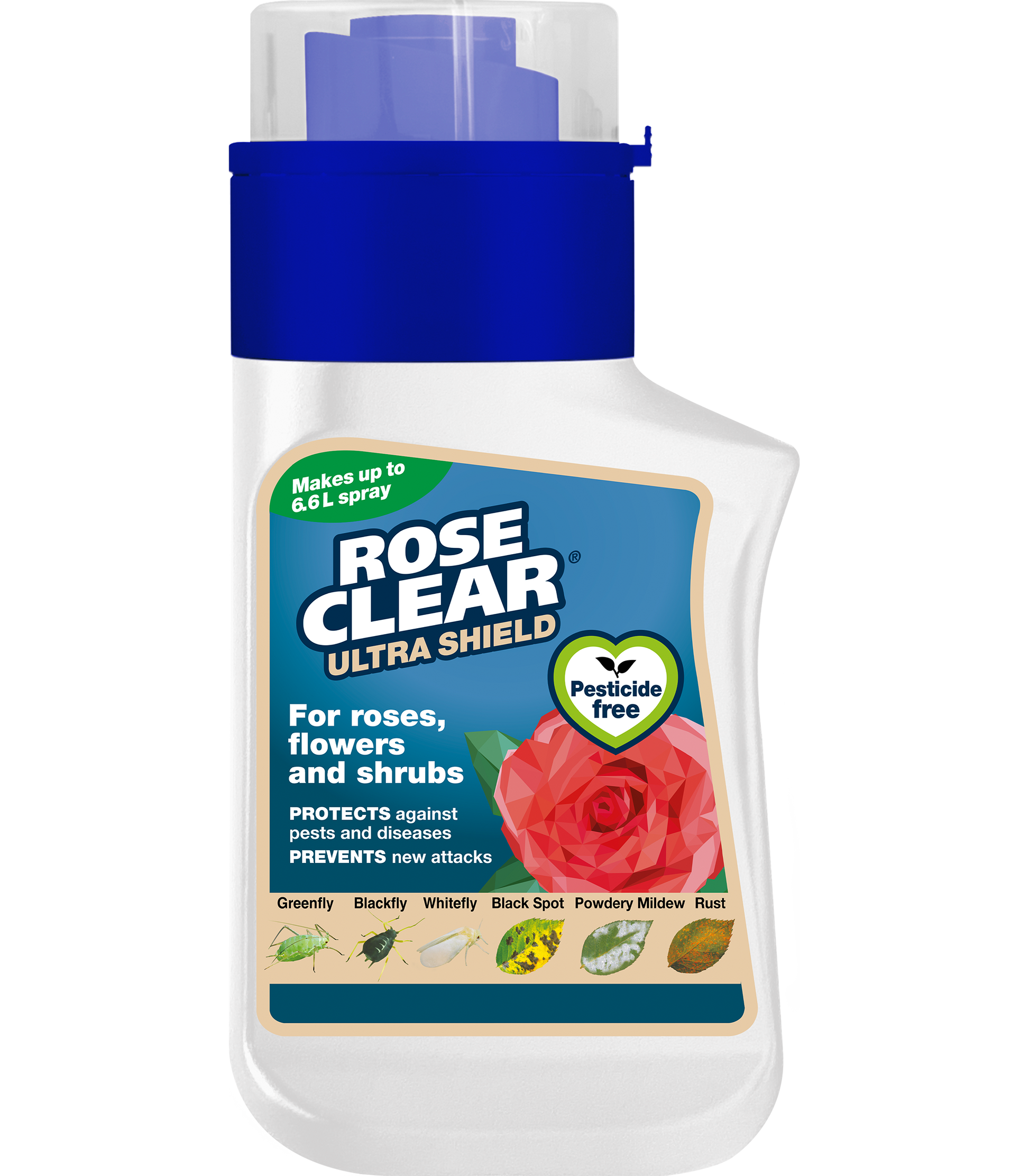RoseClear® Ultra Shield contains natural oil and provides great shield protection for flowers, roses and other ornamental plants. Pesticide-free formula.