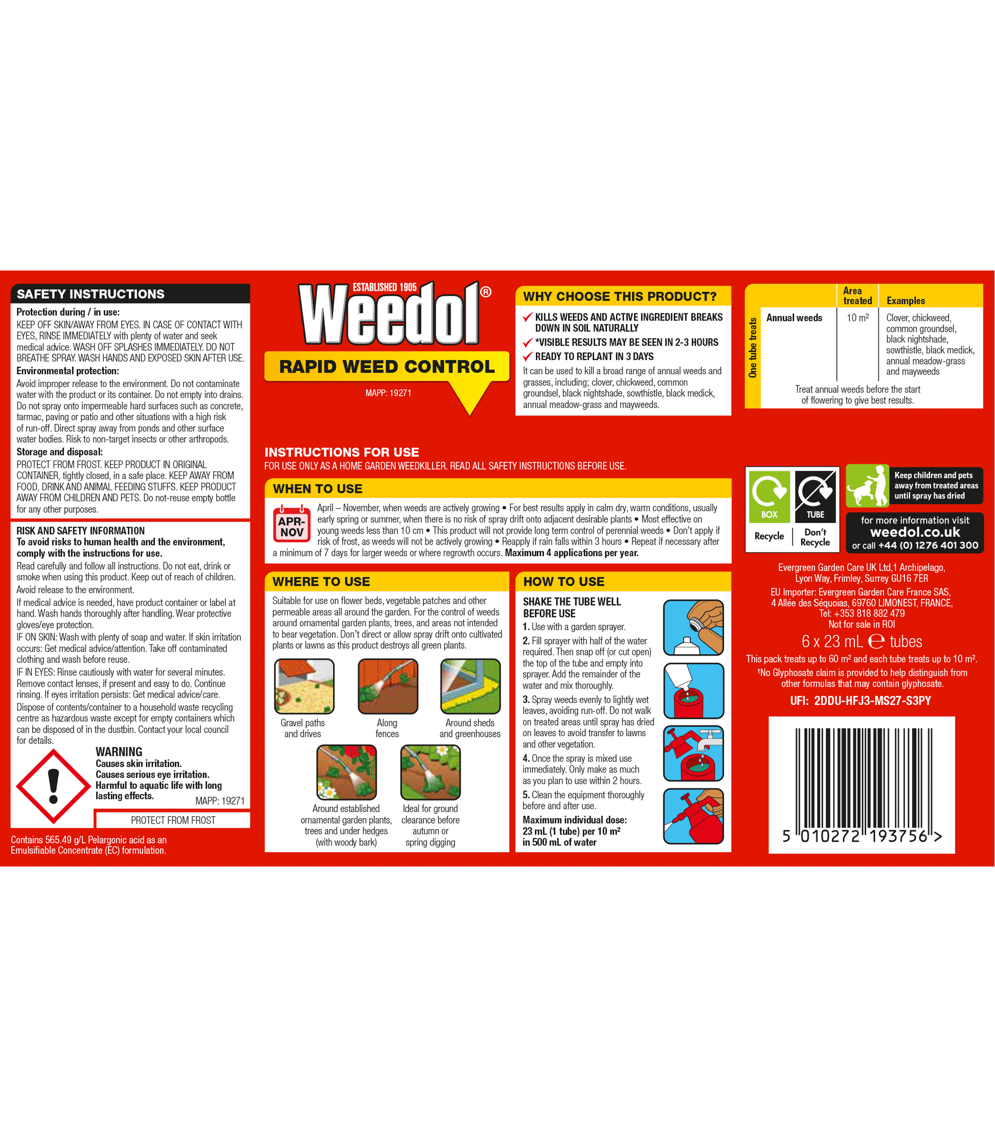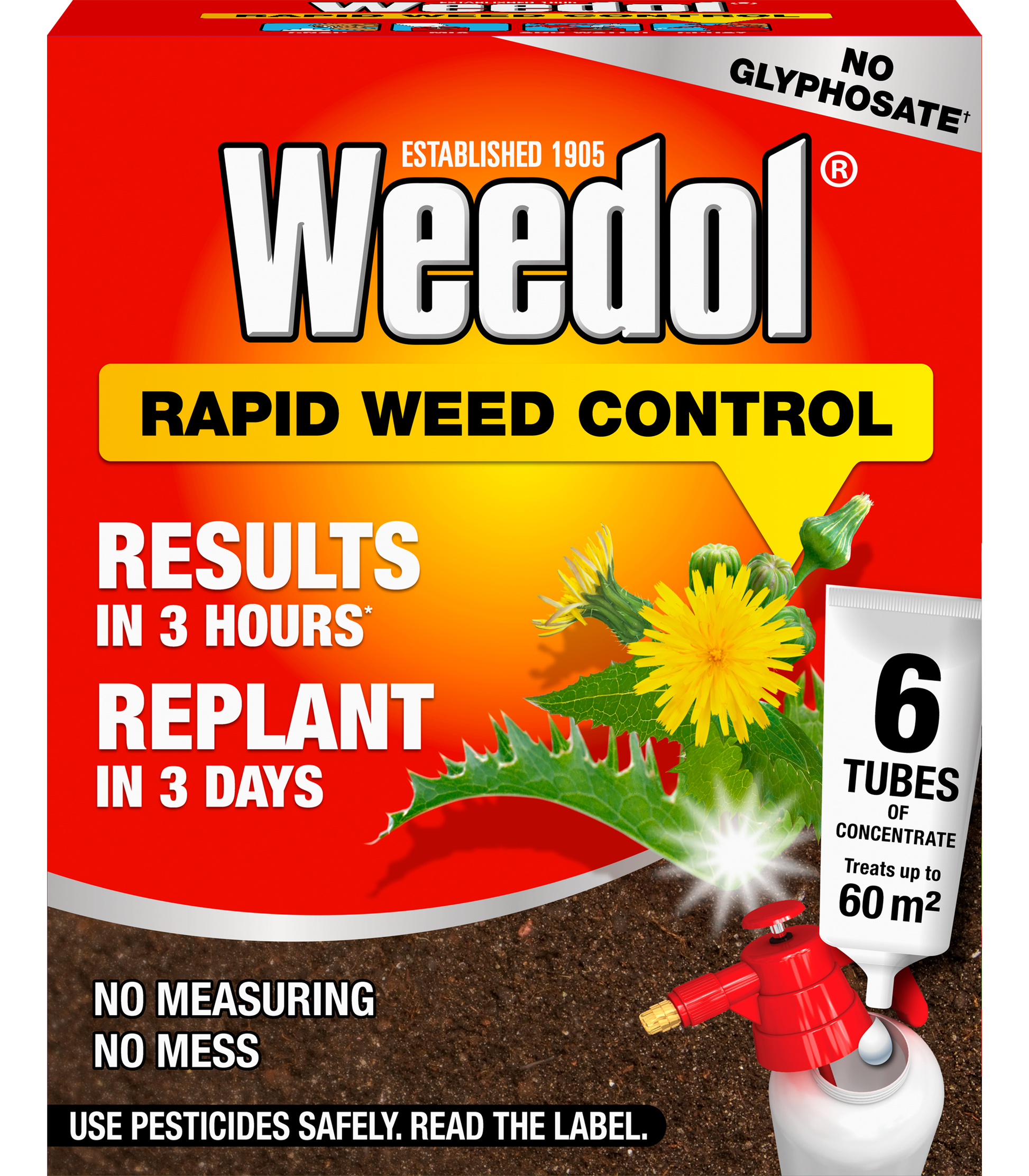 Weedol® Rapid Weed Control Concentrate Tubes kills weeds and active ingredient breaks down in soil naturally. Visible results may be seen in 2-3 hours and ready to replant in 3 days.
